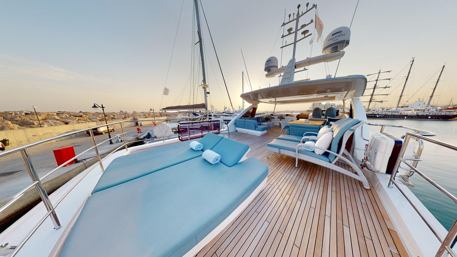Accommodating up to 10 guests in generously sized cabins, the M/Y Hallelujah offers an array of exceptional features, including an impressive flybridge with 360-degree views. This expansive outdoor space boasts a large dining area, ample seating with custom sun loungers, and a fully equipped wetbar with a BBQ, all under a sleek white GRP hard top with an electrically operated roof and optional sun awning.