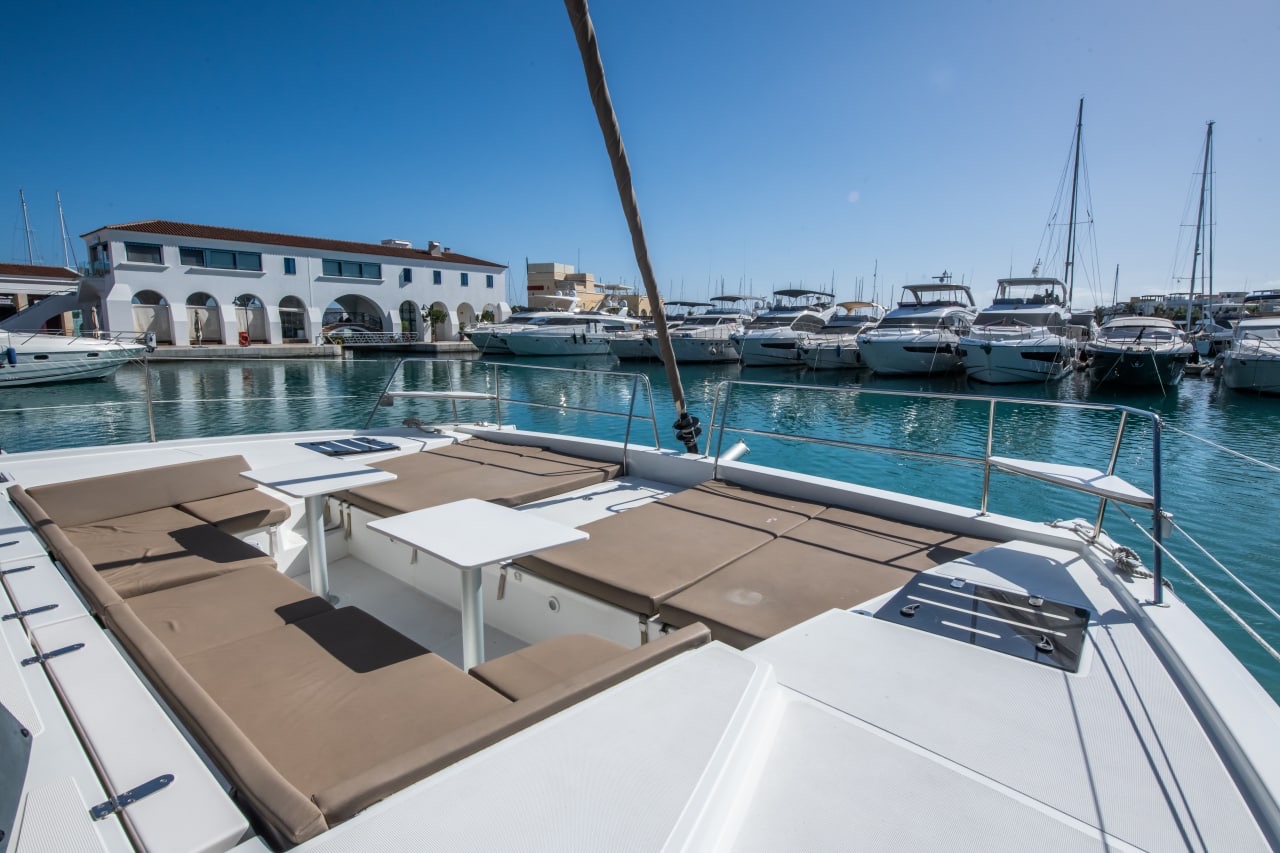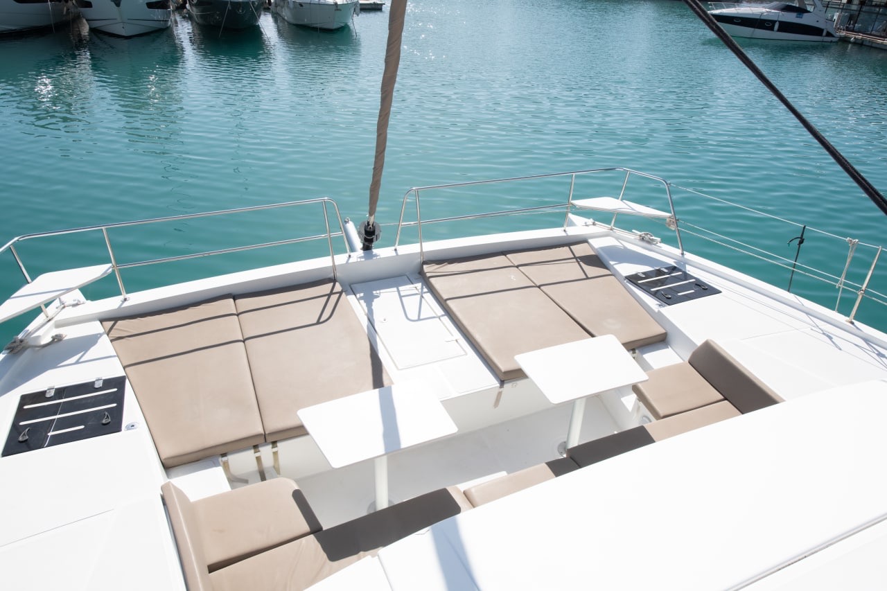 The Catamaran is unique due to its modern design and panoramic windows.The spacious lounge area on the flybridge of the Catamaran will make your cruise unforgettable. The catamaran is technically equipped with everything necessary for a comfortable and carefreeboat trip.